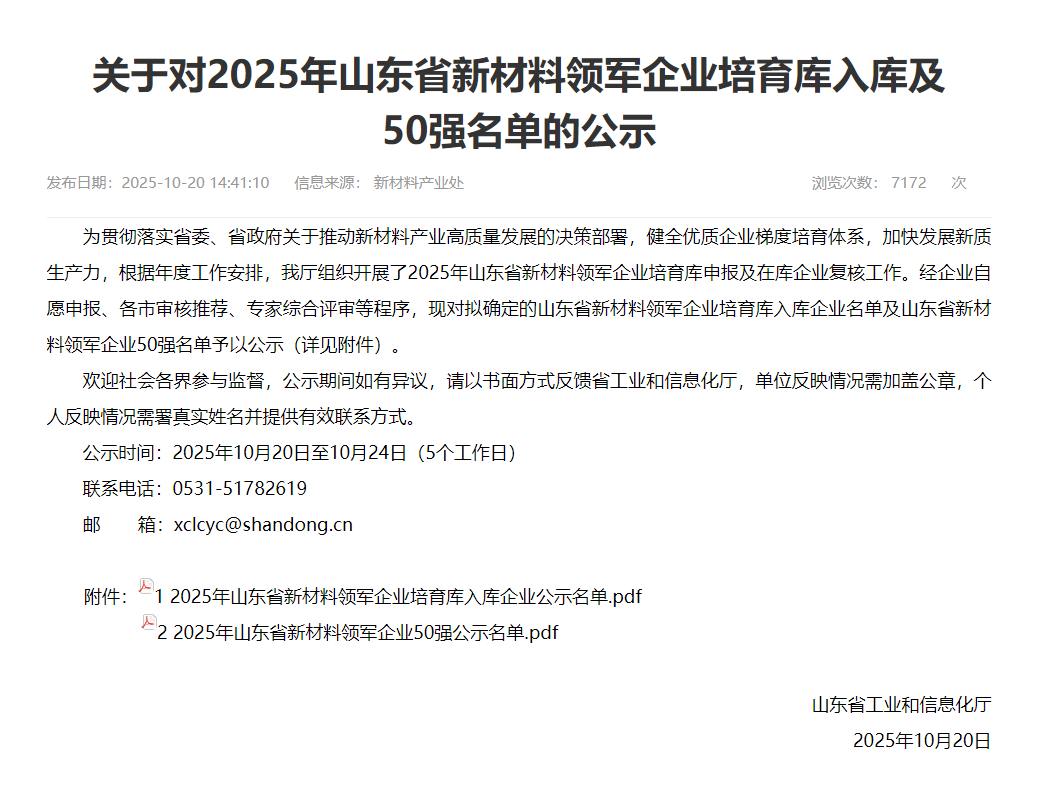 æ¤æ¬¡å…¥é€‰å±±ä¸œçœæ–°ææ–™é¢†å†›ä¼ä¸šåŸ¹è‚²åº“,既是对公å¸çŽ°æœ‰æˆæžœçš„认å¯ï¼Œæ›´èµ‹äºˆäº†æˆ‘们 “引领产业方å‘ã€å¸¦åŠ¨é›†ç¾¤å‘展†的新使命。